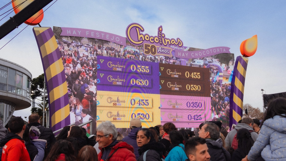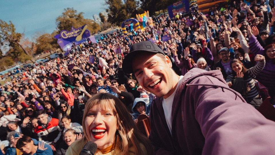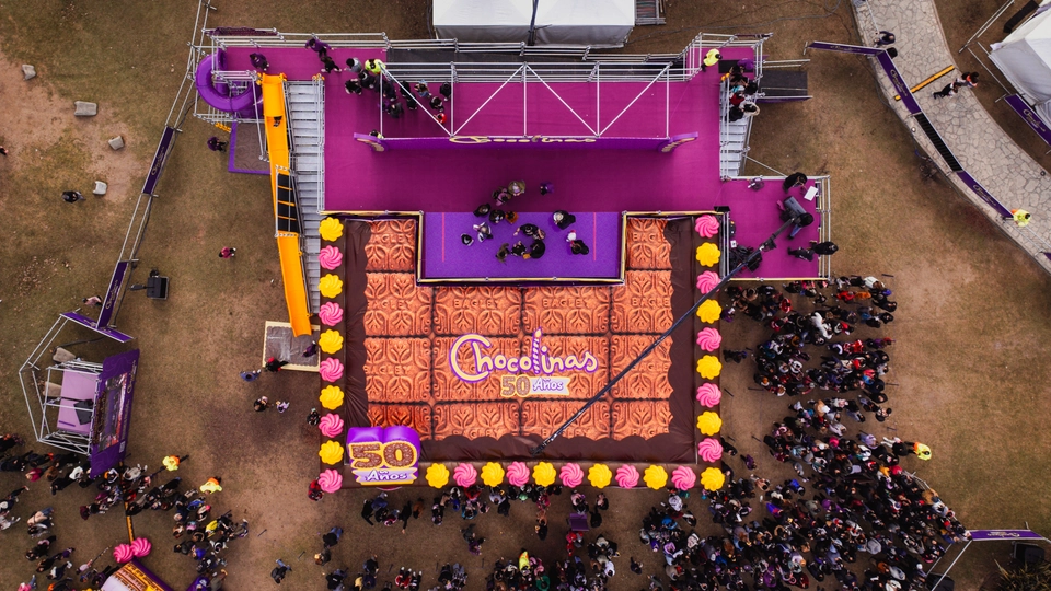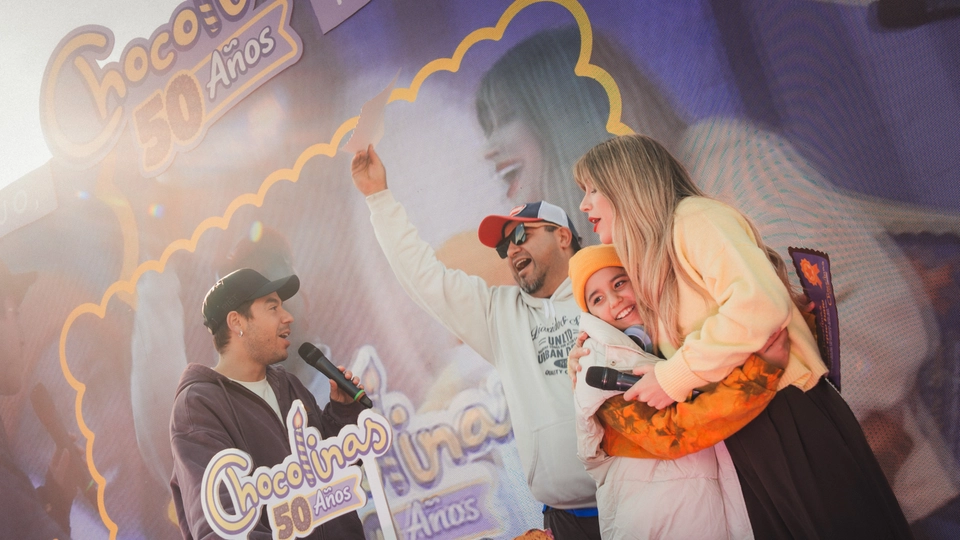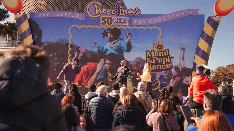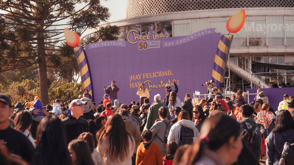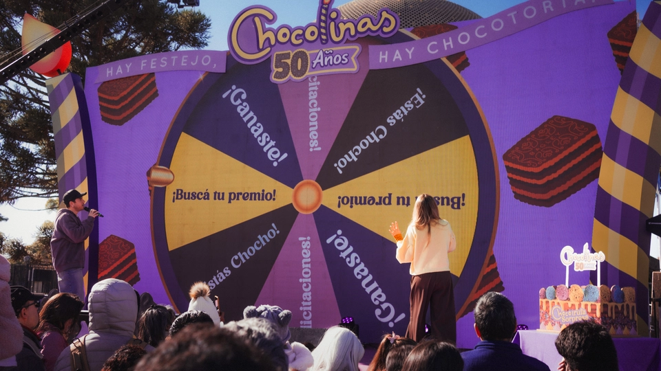3. El Escenario, como centro de los festejos, con 7 horas continuas de contenidos atractivos, premios, y desafíos bajo la vibrante conducción de Fer Dente y Laurita Fernández: “Kiss Cam”, “Baby Cam”, “Mami & Papi Dance”, Chocotrufa Sorpresa y “Completá la Canción” fueron momentos inolvidables, al ritmo de los jingles históricos de Chocolinas y con miles de premios y memorabilia que diseñamos para que todos se lleven un recuerdo inolvidable.