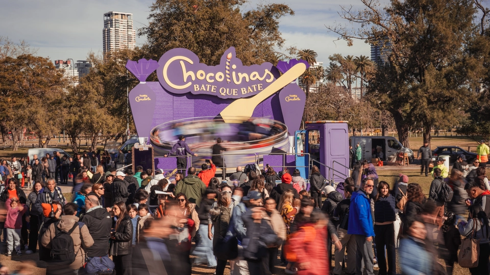 1. El Samba “Chocolinas Bate que Bate” transformando en una experiencia grupal y divertida el acto mismo de preparación de la torta. El Samba fue conceptualizado como bowl de batido fue otra de las sensaciones del evento, con miles de personas girando dentro de la mezcla de crema y dulce de leche, junto con un Circuito Chocolinas dedicado a la primera infancia.