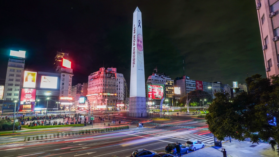Un sentido homenaje al Papa Francisco en el Obelisco de su ciudad natal.